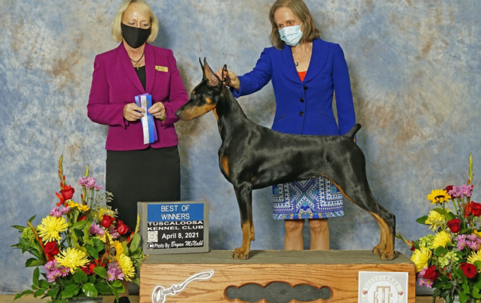 Demi is the daughter we kept from Diana’s litter with Hades, born Sept 2020. She finished in 4 weekends from first point to last, from the bred by exhibitor class at 10 months of age.